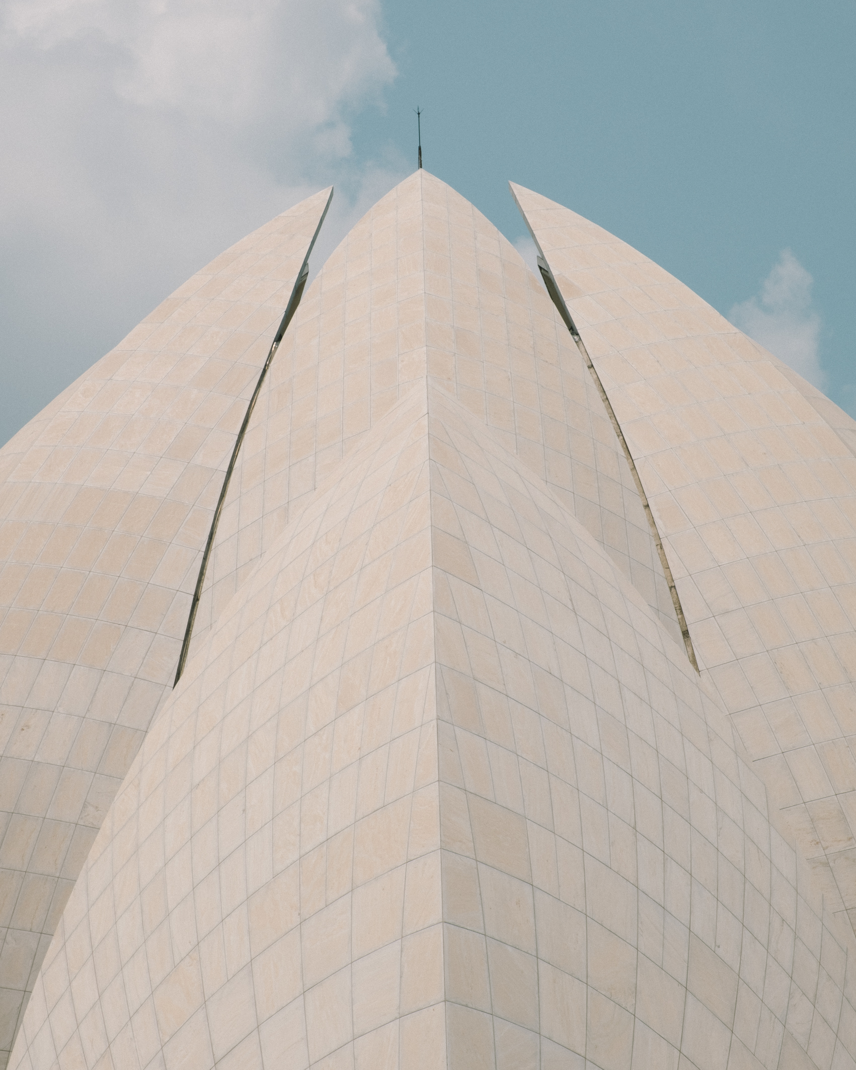 The building is composed of 27 free-standing marble-clad "petals" arranged in clusters of three to form nine side.